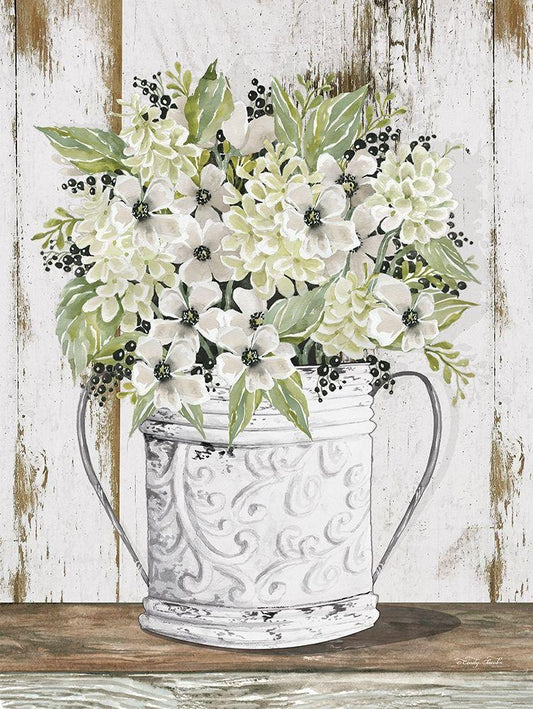 Floral Country Crocks White Modern Wood Framed Art Print with Double Matting by Jacobs, Cindy