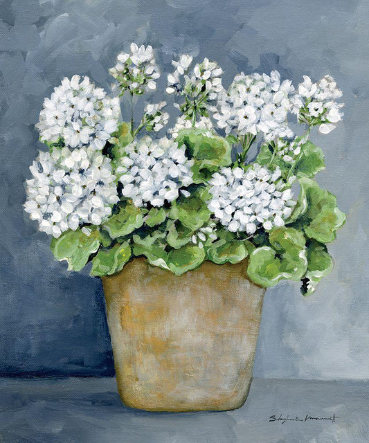 Potted Geraniums White Modern Wood Framed Art Print with Double Matting by Marrott, Stephanie