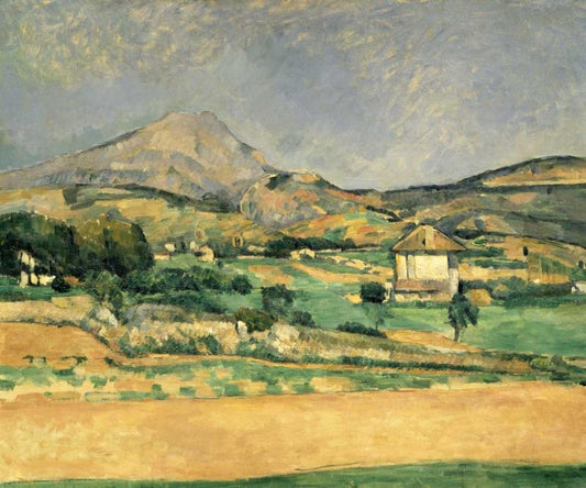 A View Over Mont St. Victoire White Modern Wood Framed Art Print with Double Matting by Cezanne, Paul