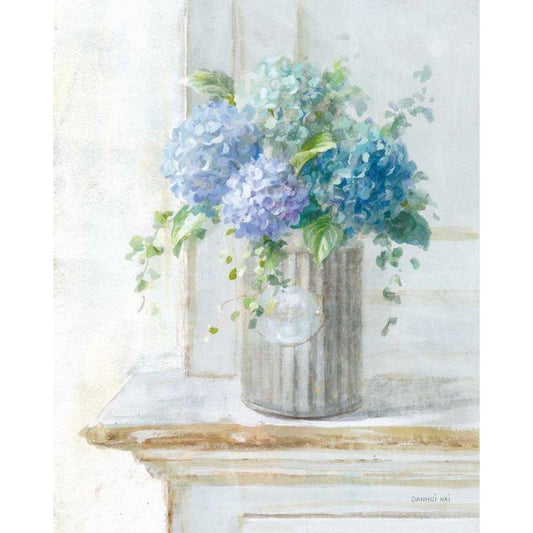 Morning Hydrangeas II Black Modern Wood Framed Art Print with Double Matting by Nai, Danhui