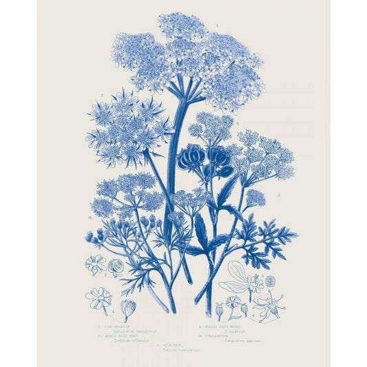Flowering Plants I Mid Blue Black Modern Wood Framed Art Print with Double Matting by Wild Apple Portfolio