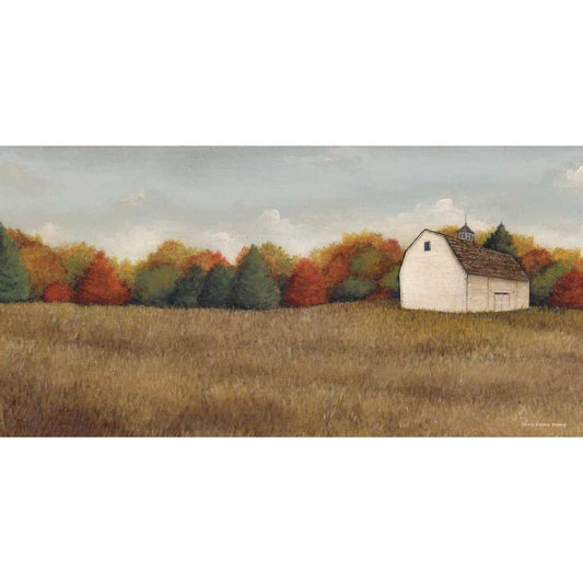White Barn in Field Neutral Black Modern Wood Framed Art Print with Double Matting by Brown, David Carter