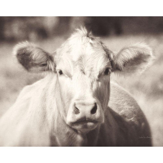 Pasture Cow Neutral Gold Ornate Wood Framed Art Print with Double Matting by Van Swearingen, Debra