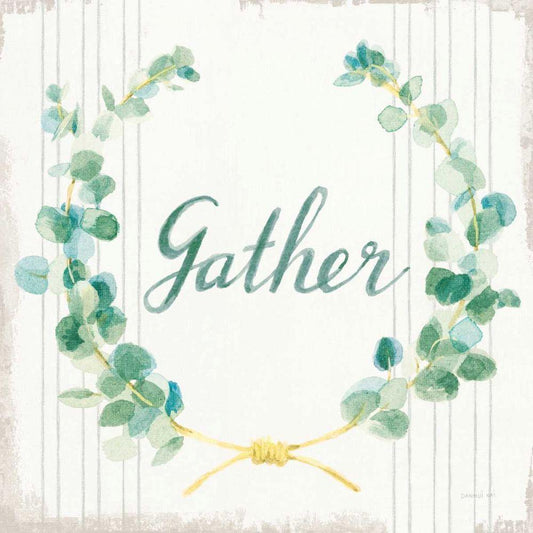 Floursack Holiday IX Gather Sage v2 Gold Ornate Wood Framed Art Print with Double Matting by Nai, Danhui