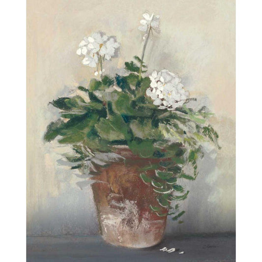 Pot of White Geraniums Gold Ornate Wood Framed Art Print with Double Matting by Rowan, Carol