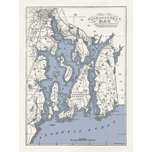 Narragansett Bay Map II Gold Ornate Wood Framed Art Print with Double Matting by Wild Apple Portfolio