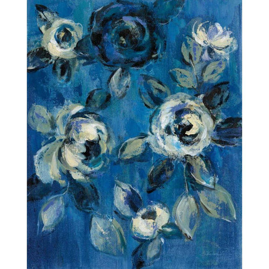 Loose Flowers on Blue I Gold Ornate Wood Framed Art Print with Double Matting by Vassileva, Silvia