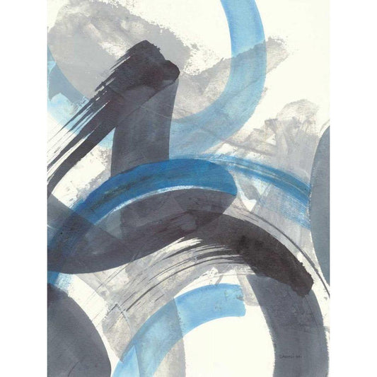 Blue Brushy Abstract II Gold Ornate Wood Framed Art Print with Double Matting by Nai, Danhui