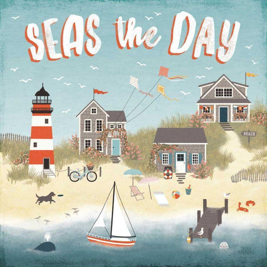 Seaside Village II Gold Ornate Wood Framed Art Print with Double Matting by Marshall, Laura