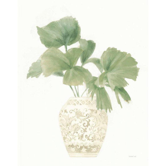 Palm Chinoiserie II Sage Gold Ornate Wood Framed Art Print with Double Matting by Nai, Danhui