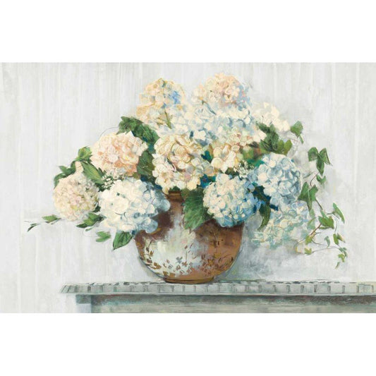 White Hydrangea Cottage Gold Ornate Wood Framed Art Print with Double Matting by Rowan, Carol