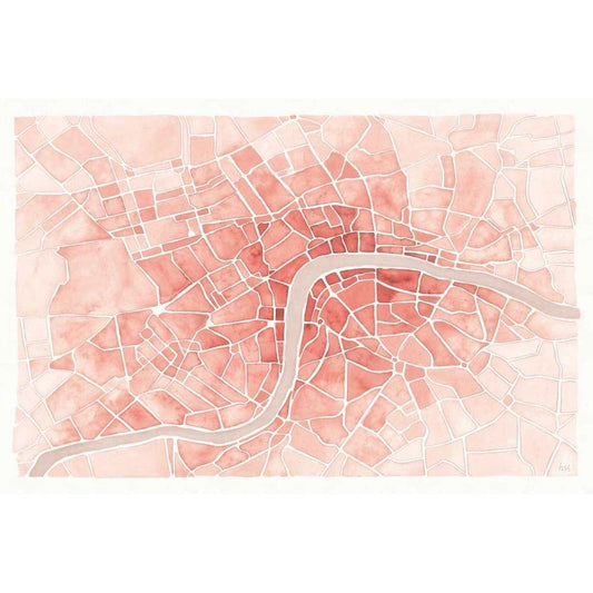 Watercolor Wanderlust London Coral Gold Ornate Wood Framed Art Print with Double Matting by Marshall, Laura