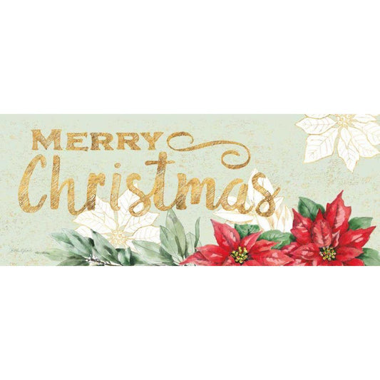 Watercolor Poinsettia Merry Christmas Gold Ornate Wood Framed Art Print with Double Matting by Grove, Beth