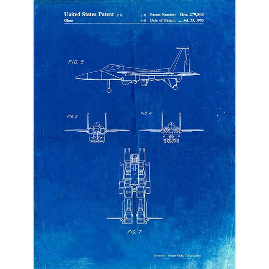 PP202- Faded Blueprint Starscream Transformer Patent Poster Gold Ornate Wood Framed Art Print with Double Matting by Borders, Cole