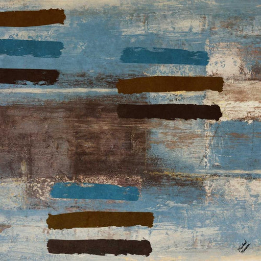 Blue Bared Abstract Square II Gold Ornate Wood Framed Art Print with Double Matting by Marcon, Michael