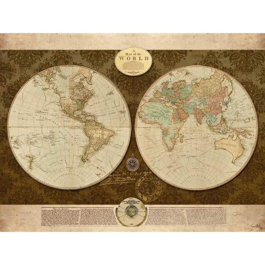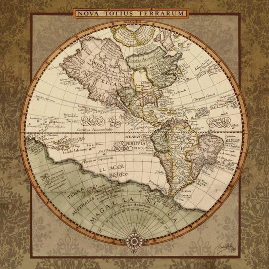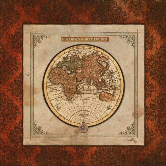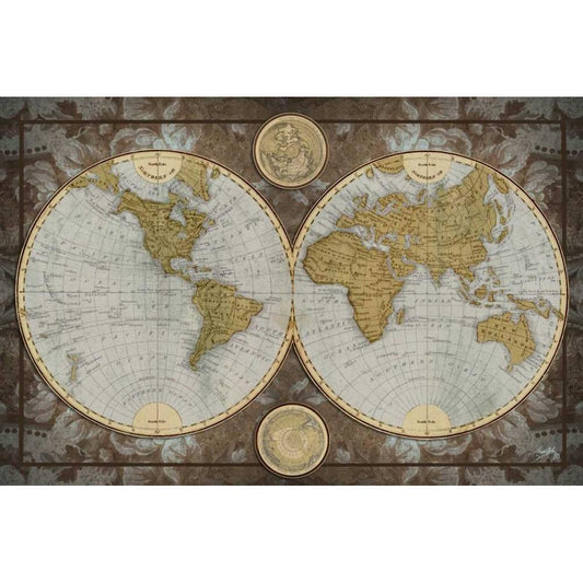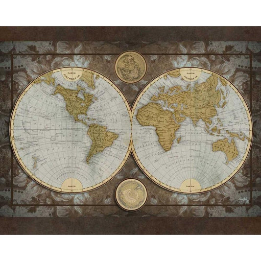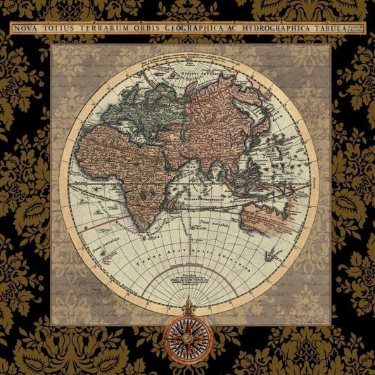 Damask World Map I Gold Ornate Wood Framed Art Print with Double Matting by Medley, Elizabeth