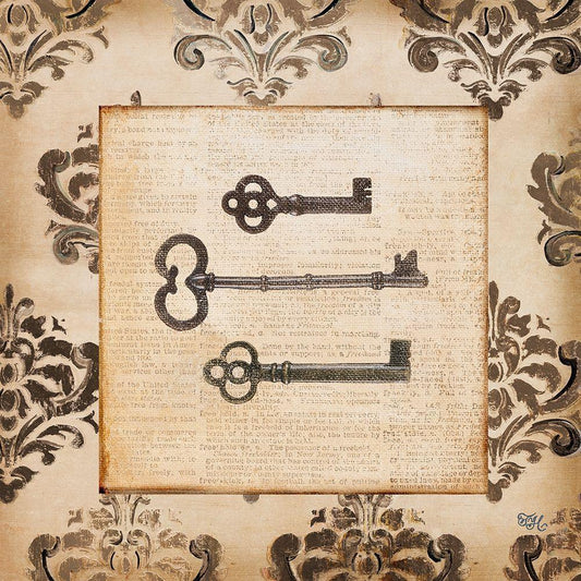 Vintage Keys I Gold Ornate Wood Framed Art Print with Double Matting by Hakimipour, Tiffany