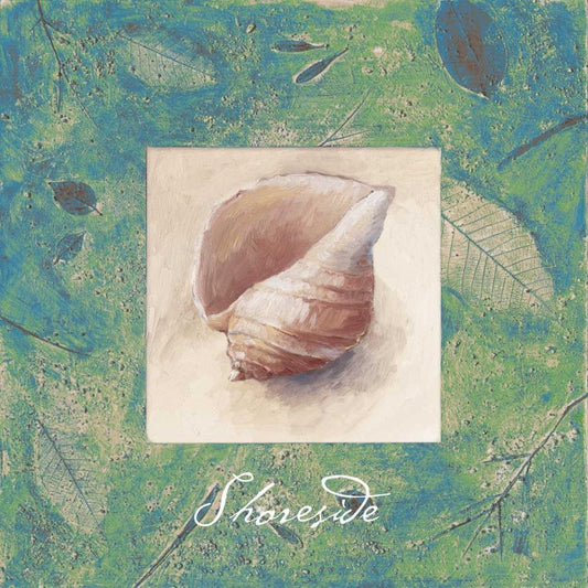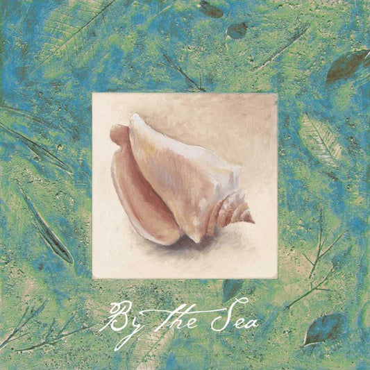 Blue Conch Shell on Cream Gold Ornate Wood Framed Art Print with Double Matting by DeRice, Julie