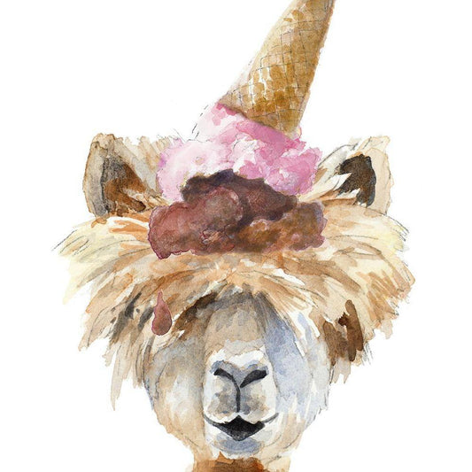 Ice Cream Llama Gold Ornate Wood Framed Art Print with Double Matting by Loreth, Lanie