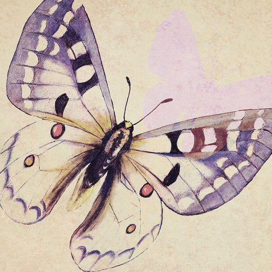 Lavender Butterfly on Cream Gold Ornate Wood Framed Art Print with Double Matting by Pinto, Patricia