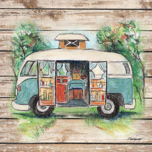 Retro Camping Van Gold Ornate Wood Framed Art Print with Double Matting by Williams, Todd
