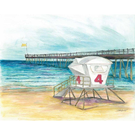 Lifeguard Station Gold Ornate Wood Framed Art Print with Double Matting by Williams, Todd