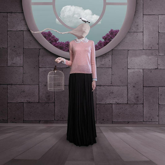The Bird Flew And Lady Miss Her Already Gold Ornate Wood Framed Art Print with Double Matting by Hardibudi