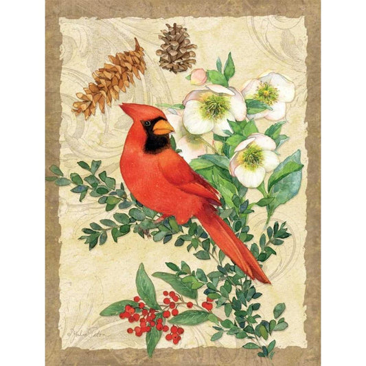 Holiday Cardinal Gold Ornate Wood Framed Art Print with Double Matting by Paton, Julie
