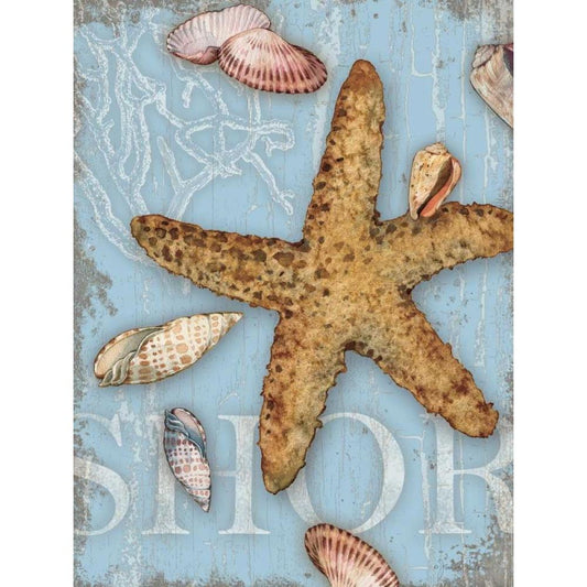 Beach Shells Starfish Gold Ornate Wood Framed Art Print with Double Matting by Paton, Julie