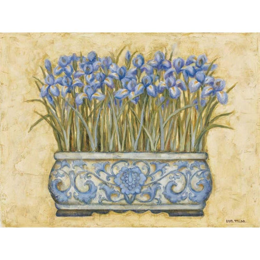 Blue Irises Gold Ornate Wood Framed Art Print with Double Matting by Misa, Eva