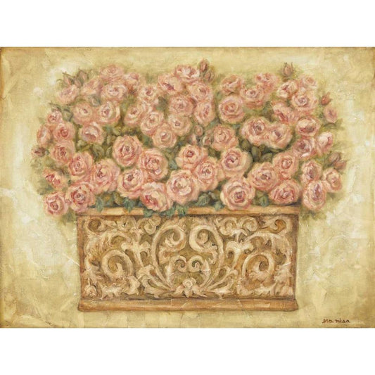 Pink Roses Gold Ornate Wood Framed Art Print with Double Matting by Misa, Eva