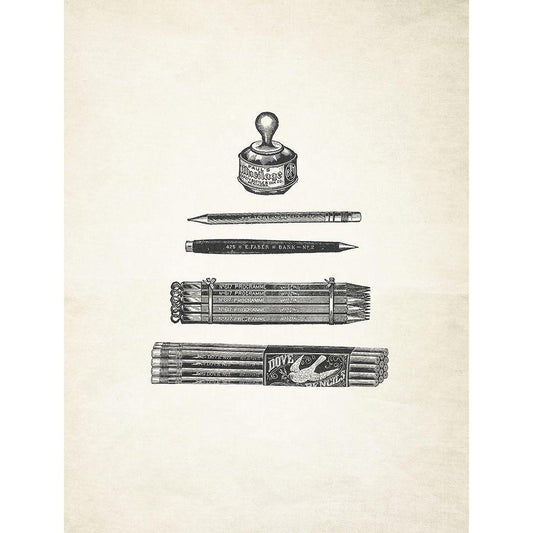 Pencils and Pen Gold Ornate Wood Framed Art Print with Double Matting by Appleman, Sam