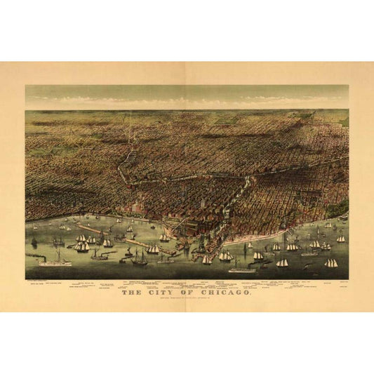 1892 Chicago Map Gold Ornate Wood Framed Art Print with Double Matting by Harbick, N.