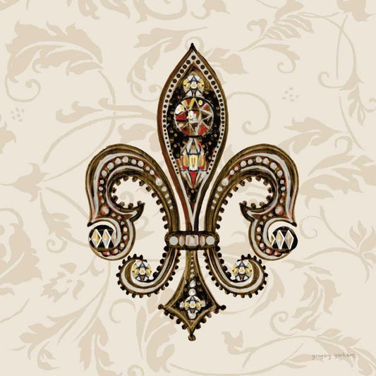 Fleur de Lis Motif II Gold Ornate Wood Framed Art Print with Double Matting by Gorham, Gregory