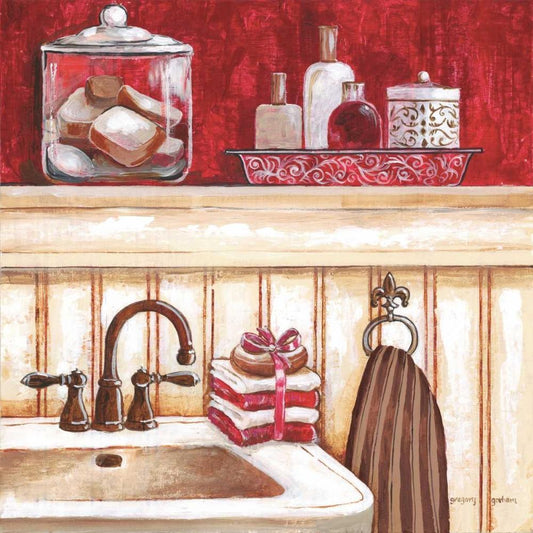 Red Bath I Gold Ornate Wood Framed Art Print with Double Matting by Gorham, Gregory