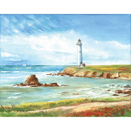 Lighthouse Path Gold Ornate Wood Framed Art Print with Double Matting by Gorham, Gregory