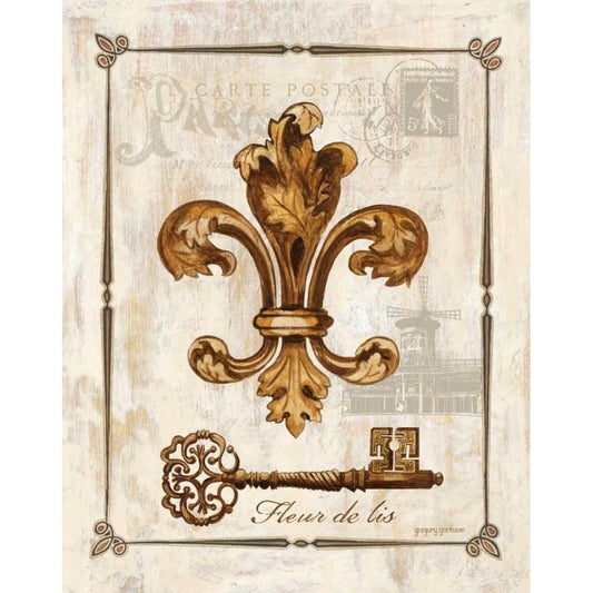 Fleur de Lis Gold Ornate Wood Framed Art Print with Double Matting by Gorham, Gregory