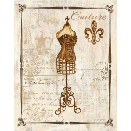 Paris Dress Form Gold Ornate Wood Framed Art Print with Double Matting by Gorham, Gregory