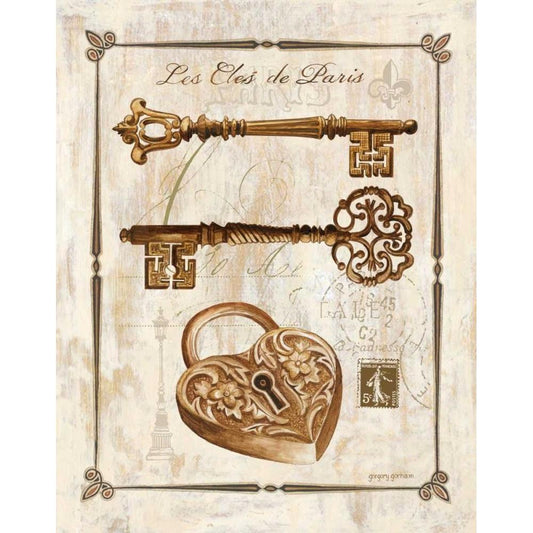 Keys to Paris II Gold Ornate Wood Framed Art Print with Double Matting by Gorham, Gregory
