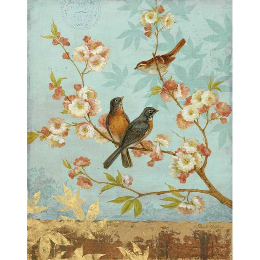 Robins and Blooms Gold Ornate Wood Framed Art Print with Double Matting by Gladding, Pamela