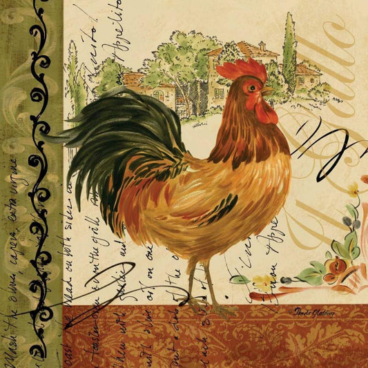 Viva Italia Roosters III Gold Ornate Wood Framed Art Print with Double Matting by Gladding, Pamela
