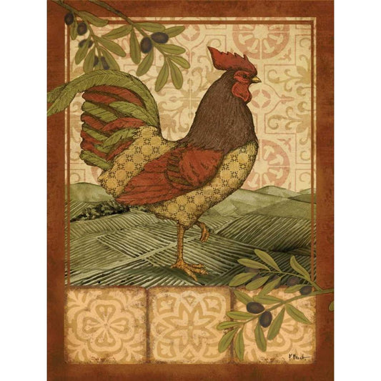 Tuscan Rooster I Gold Ornate Wood Framed Art Print with Double Matting by Brent, Paul