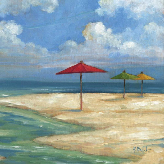 Umbrella Beachscape Sq. II Gold Ornate Wood Framed Art Print with Double Matting by Brent, Paul