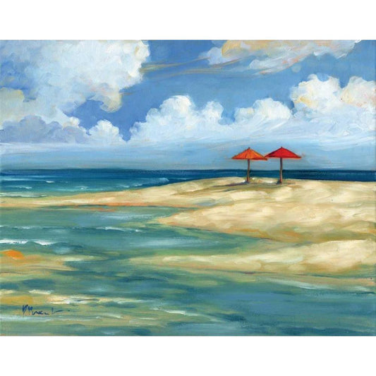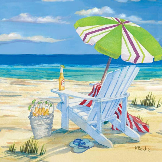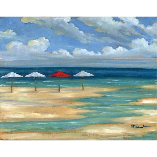 Umbrella Beachscape III Gold Ornate Wood Framed Art Print with Double Matting by Brent, Paul