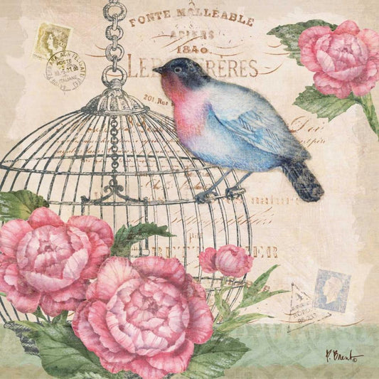 Blossoming Birds I Gold Ornate Wood Framed Art Print with Double Matting by Brent, Paul