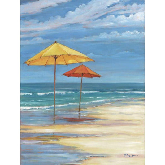 Umbrella Beachscape II Gold Ornate Wood Framed Art Print with Double Matting by Brent, Paul