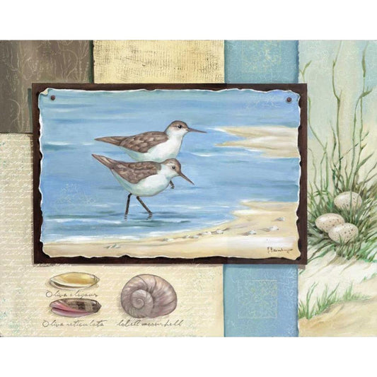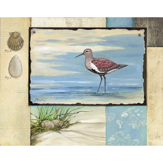Sandpiper Collage I Gold Ornate Wood Framed Art Print with Double Matting by Brent, Paul