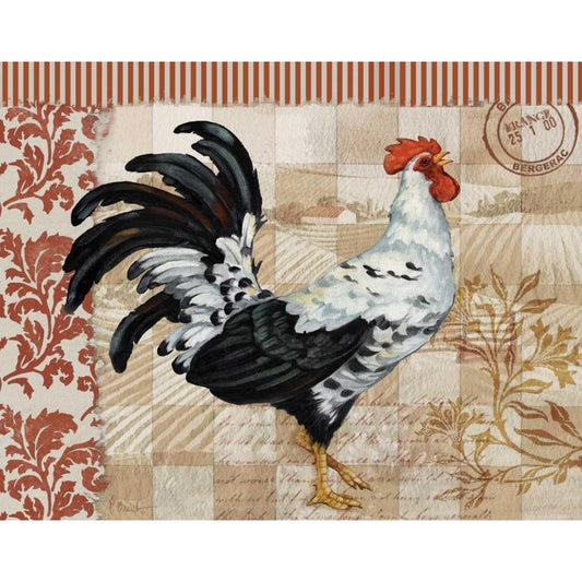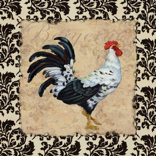 Bergerac Rooster Black I Gold Ornate Wood Framed Art Print with Double Matting by Brent, Paul