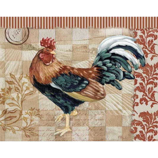 Bergerac Rooster Red II Gold Ornate Wood Framed Art Print with Double Matting by Brent, Paul