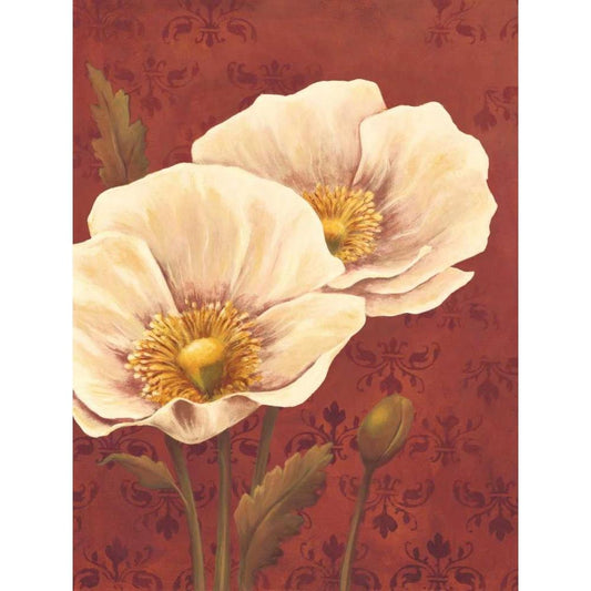 Poppies on Red Gold Ornate Wood Framed Art Print with Double Matting by Belamar, Ella